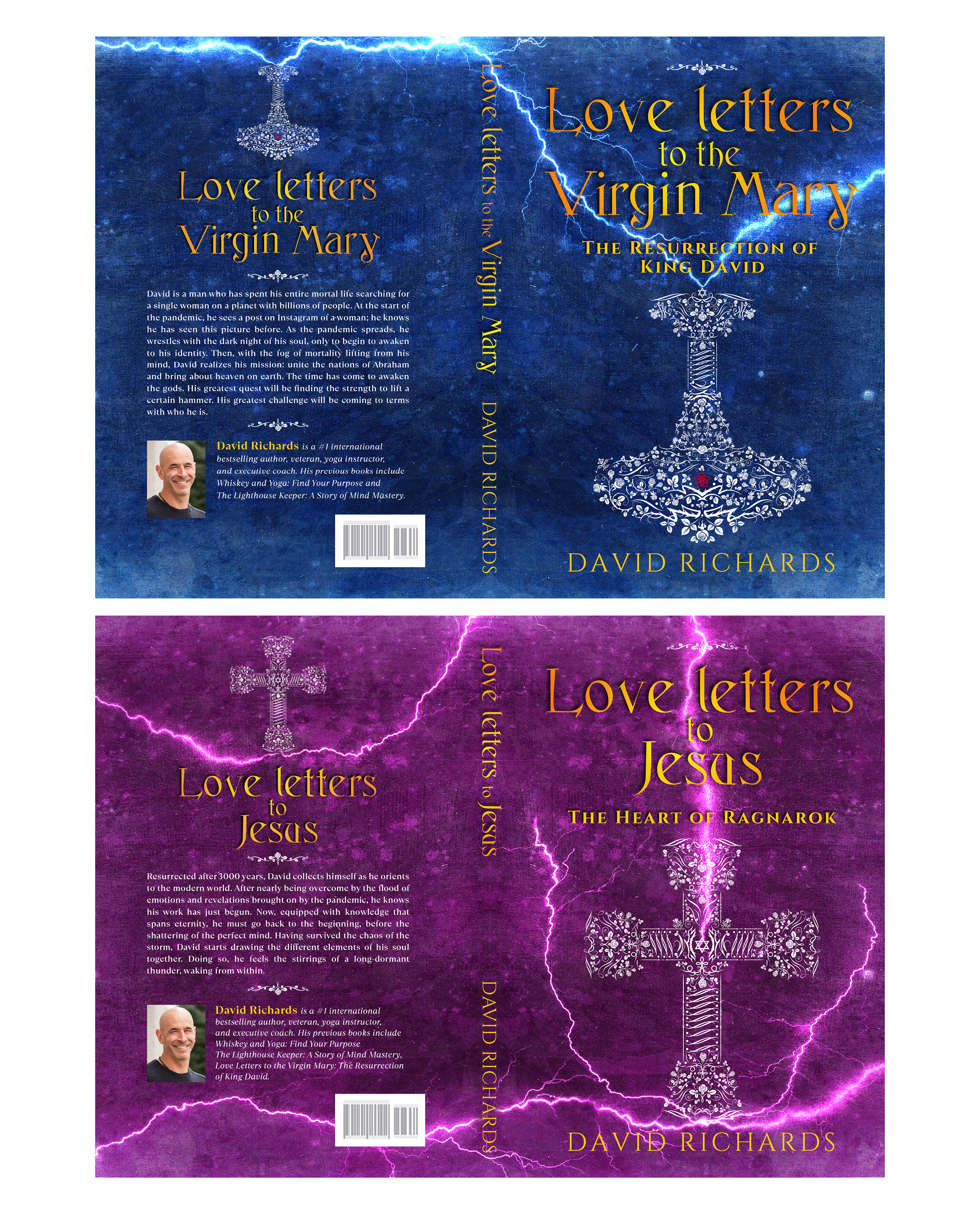 The brief was to create a book cover that combines the three Abrahamic faiths of Judaism, Christianity, and Islam all tell a bigger story, that they’re all connected. Ultimately, this book is meant to be a love story that would unite the world behind the idea that there must be at least one fairy tale we all would be willing to believe in. I used a floral pattern to convey this along with the Star of David to the top of the hammer and a red 5 petal rose in the heart of the hammer to symbolise all 5 of Christ’s wounds. The second book in a planned trilogy. The author wanted a cross to replace the hammer with the Star of David centre, also lightening bolts shaped to subtly represent Mjolnir (the hammer of the thunder god, Thor) from the previous book.
